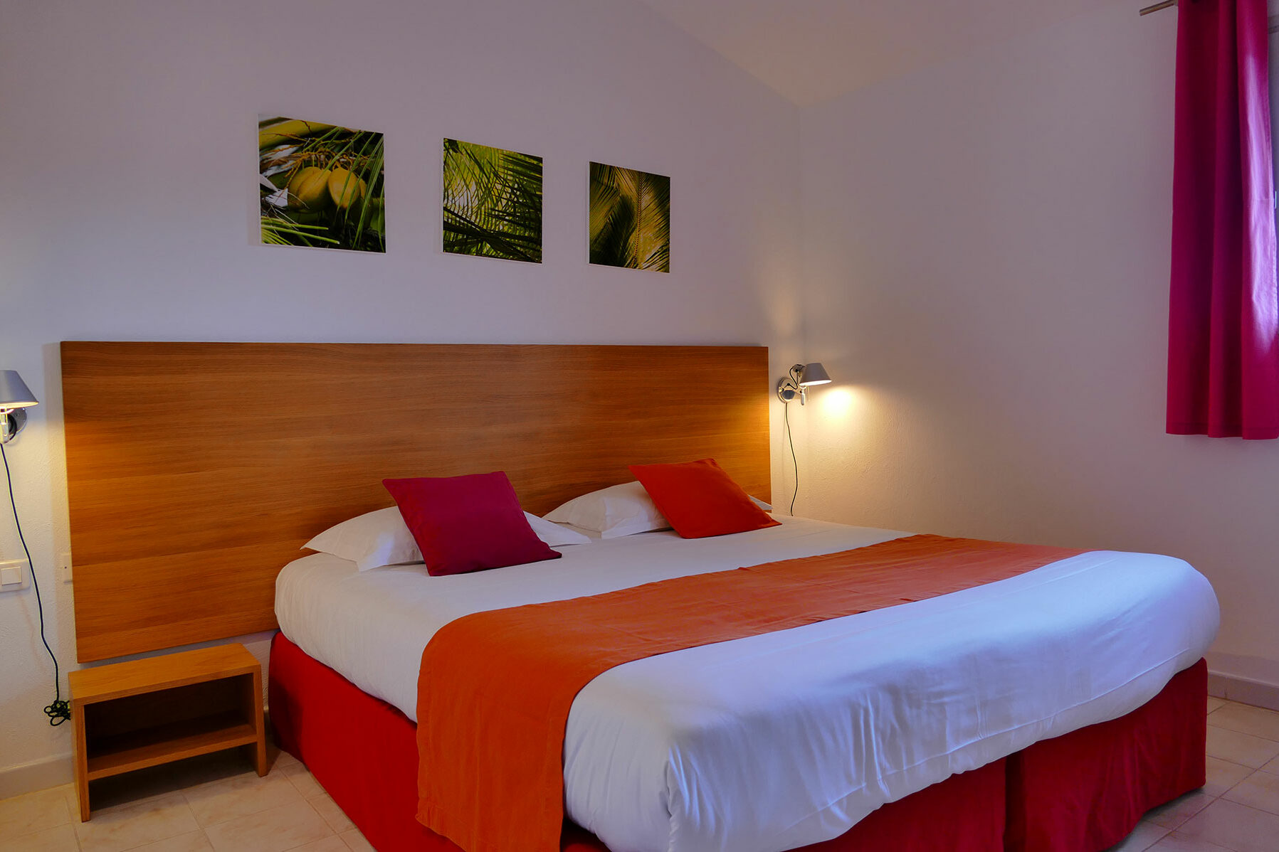 Les appartements sont composés de 2 chambres spacieuses : une suite parentale avec salle d’eau et un lit King Size et une seconde chambre avec 2 lits individuels, d’une salle de bain avec baignoire, d’une cuisine américaine avec accès direct sur la terrasse, d’un vaste séjour pouvant accueillir 2 personnes supplémentaires (canapé d’angle convertible ou 2 lits simples) donnant directement sur la terrasse privative ombragée.