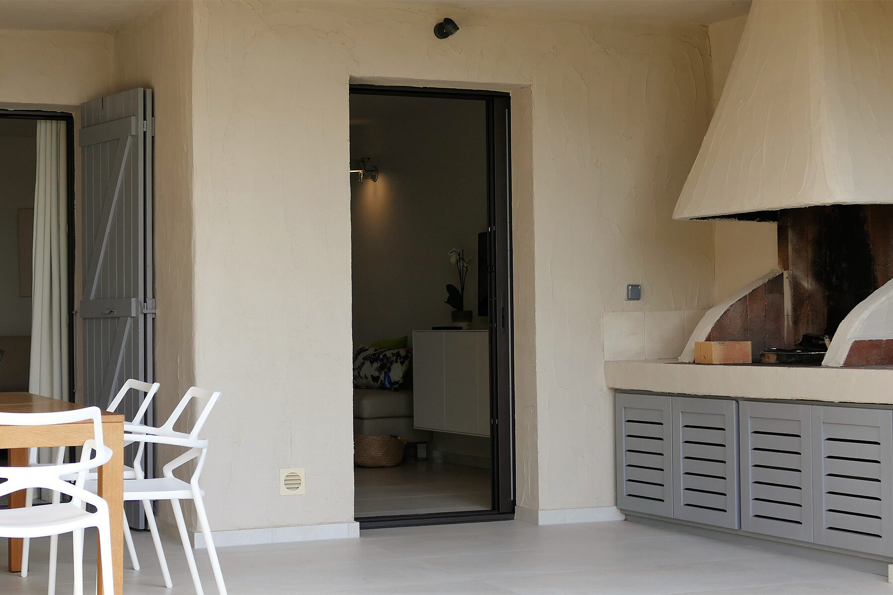 Une décoration contemporaine aux tons clairs, une grande terrasse couverte aménagée et équipée d’un barbecue face à la baie de Santa Giulia, le confort est idéal pour 2 personnes avec une chambre indépendante. Le salon offre deux couchages supplémentaires pour les familles avec un canapé convertible.